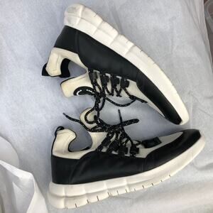 pre-owned, light wear, some yellowing, marks on mesh, marks on soles, overall great condition