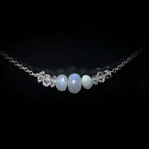 Genuine Moonstone w/ Salt & Pepper “Herkimer Diamonds” Moonstone is highly sough after. This Particular gem is more white than clear w/ flashes of blue, green & purple colors. Moonstone holds the power of mystery & protection, it is highly recommended to wear while traveling. Moonstone is foremost a talisman of the inward journey, taking one deep into the self to retrieve what is missing. The parts of the soul once left behind or forgotten is then brought to light. (Bundle & Save with Discount!)
