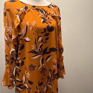This Ann Taylor dress features a striking orange and black color palette, perfect for casual or work occasions. The sheath style is complemented by 3/4 bell sleeves and a crew neck, offering a sophisticated yet comfortable fit. Ideal for adding a touch of elegance to your wardrobe.