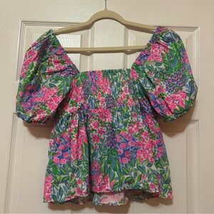 Lilly Pulitzer Kay Floral Puff Sleeve Top size 2