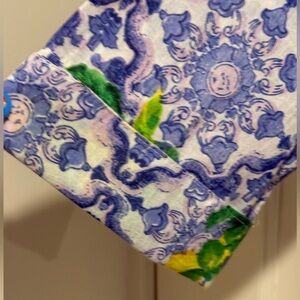 • Experience the luxury of Amtica Santorini with this pretty floral button-down blouse showcasing a striking blue and yellow color palette.