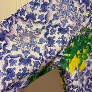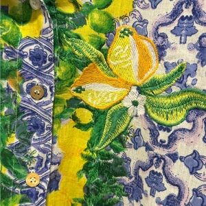 Amtica Santorini EUC Sz L Blue & Yellow Floral Button Embroidered Blouse (0654)