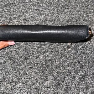 Elegant black wallet by GUESS. Features a zip-around closure and signature logo emblem. Missing outside wristlet