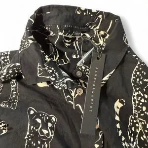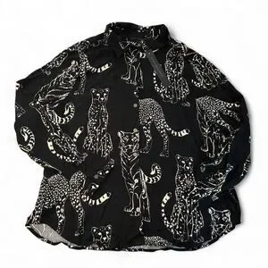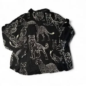 Jane & Delancey Black and White Big Cat Print button-up shirt Large