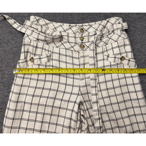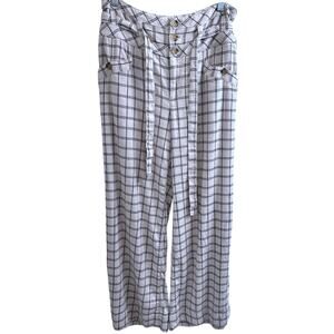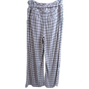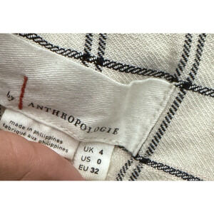 Anthropologie Cream Windowpane Linen Plaid Wide Leg Pant Size 0