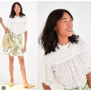 NWT FARM Rio Ivory off White Embroidered Fringe Short Sleeve Size M
