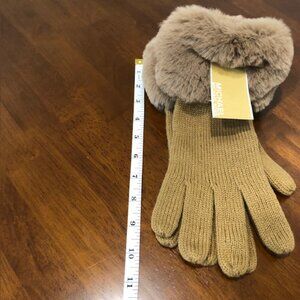 -Michael Kors Faux Fur Dark Camel Gloves NWT.