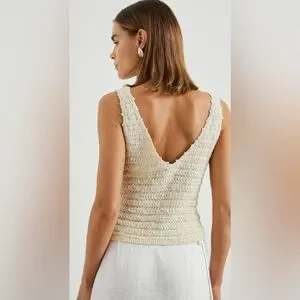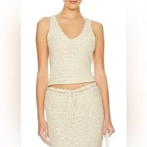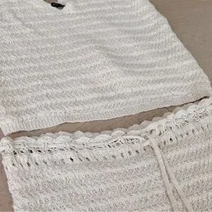 Super Cute Cotton Crochet knit made from from slub yarn cotton which ensures a soft, wearable texture. Wear with denim or linen skirt and pants or style with the coordinating crochet skirt as seen in this listing . Skirt sold separately The item is not sold as a set. please see additional listing for the skirt . In great condition