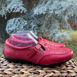 NEW Red Leather Air-Pillow Insoles Driving Moccasin T-Strap Mary Jane Flats. 10