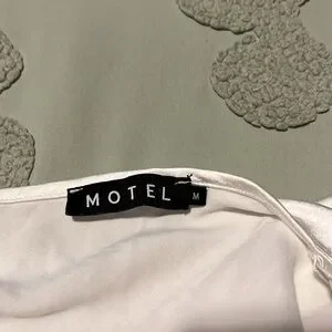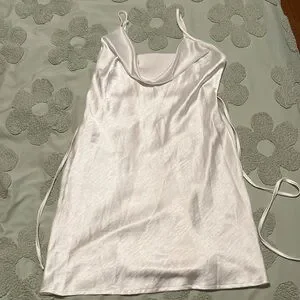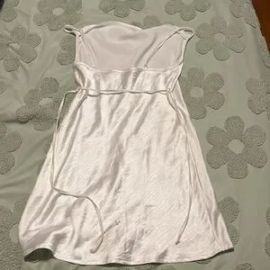 Motel Rocks Paiva Slip Dress in Satin Ivory. Dress has a cowl neck, adjustable straps, and a tie in the back (could be tied in the front as well). Worn once for a graduation, no signs of wear or stains. Beautiful pearly white color. Open to offers!