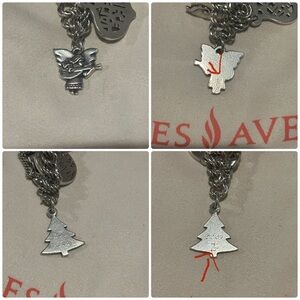 James Avery Double curb charm bracelet, has 11 James Avery charms & 1 pope John Paul charm that is NOT James Avery. 6 are RETIRED James Avery charms, which are Present charm $100, Shine your light $50, Artist Palette $80, Guitar Chorus Angel $150, Vintage Xmas tree also has engraving “Love mom and dad” on front & “2001” on back $10. while 5 are still being sold at James Avery. Special niece $30, ABC Apple $25, Graduation cap $25. I will sell the entire bracelet or I could remove the charms if you’d like to purchase separately.