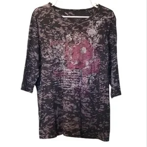 {BOGO FREE} Venezia Black and Purple Graphic 3/4 Sleeve Tee Size 18