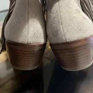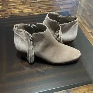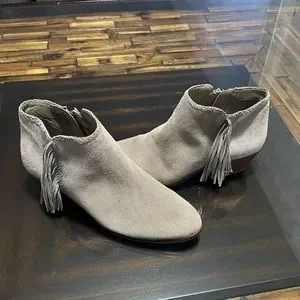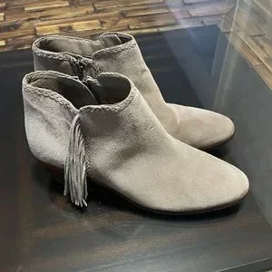 Sam Edelman Paige Fringe Gray Leather Suede Ankle Booties Size 8.5