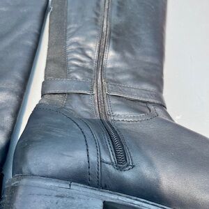 Elegant Blondo Canada waterproof riding boots with AquaProtect technology. Sleek black leather design for versatile wear. Stretch panel in back. Wider calf.