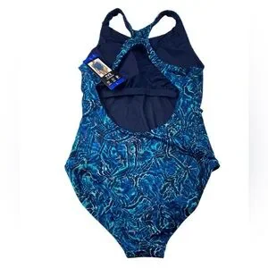 NWT TYR Blue One Piece Swimsuit Racerback Design Size Large