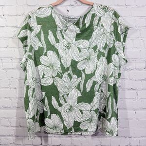 Tahari Boxy Blouse Women XL 100% Linen Summer Resort Vacation Top Resort