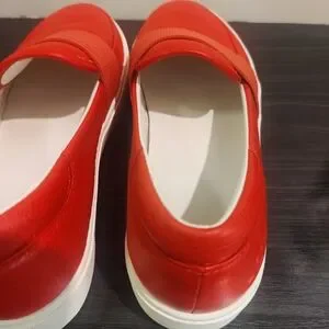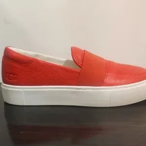 UGG Chayze Platform Sneakers Leather Slip On Round Toe Rubber Sole Red 8.5 Mint