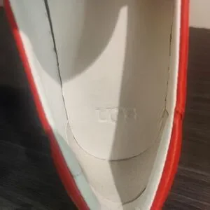These UGG Chayze Platform Sneakers in red are a stylish and comfortable slip-on shoe with a round toe and rubber sole. Ideal for travel, activewear, casual outings, and workwear, this shoe features a solid design with a vertical band for added interest. Made with leather lining and upper material, this shoe is perfect for women looking for both fashion and function. The slip-on style and rubber outsole provide convenience and support, making it a versatile addition to any wardrobe.