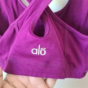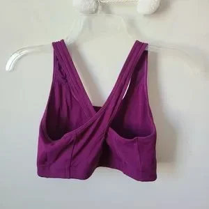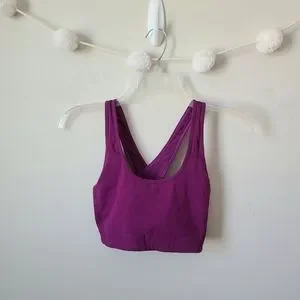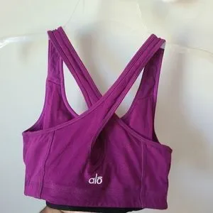 Alo Yoga purple sports bra. Wide criss cross straps. Stretchy sweat wicking fabric. 90% Nylon 10% Spandex. Size tag is missing. Measures out to be a size xs.