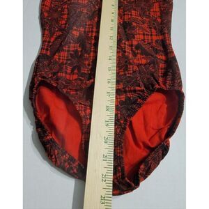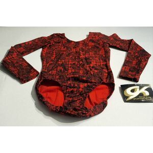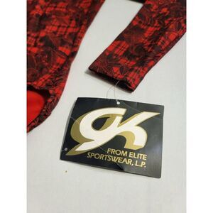 GK Elite AM Long Sleeve VTG Cotton Leotard Bodysuit Red Plaid Floral Size M, NWT