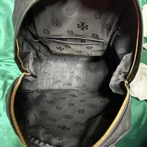 “Rendered in rich pebbled leather with a signature logo plaque, this Tory Burch backpack is both roomy and polished for work or play.
