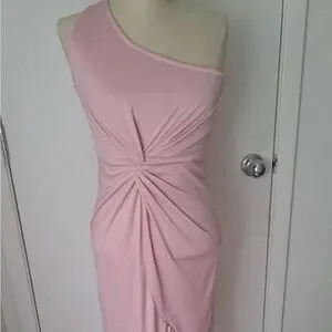 This chic pink dress showcases a stunning asymmetrical ruffled hem and a flattering sweetheart neckline, perfect for cocktail events. The sleeveless sheath design offers a sophisticated silhouette, making it an ideal choice for wedding guests.