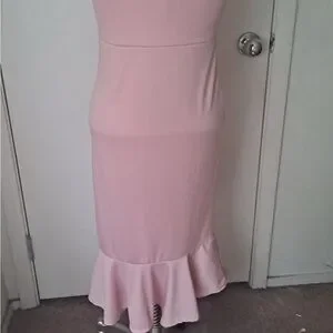 ChicMe Pink Asymmetrical Ruffled Midi Dress
