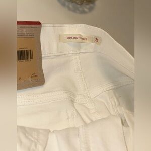 Levi's White Jean Shorts with Raw Hem and Mid-Thigh Length