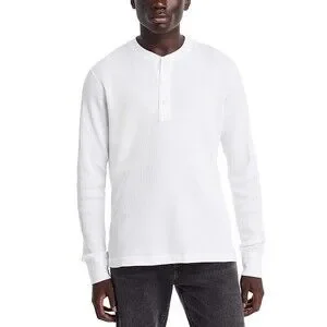 rag bone Waffle Knit Henley Top Men's XL White Solid Long Sleeve Pullover
