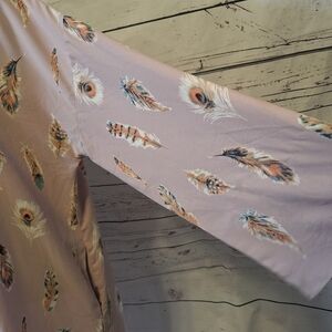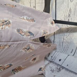 feather print in white, cream/ tan, navy blue, cornflower blue, coral