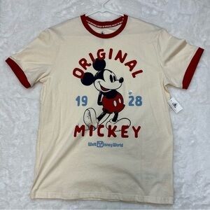 Walt Disney World Original Mickey Tee Shirt, Cream with Red trim, Unisex Size Medium, NWT