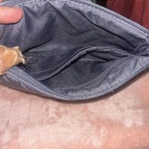 This features a faux leather trim and a very soft fabric. This lightweight wallet is perfect for traveling or for using in lieu of a purse. The inside of the wristlet has a zipper pocket and slot for your credit card or ID. This color looks great with any outfit!