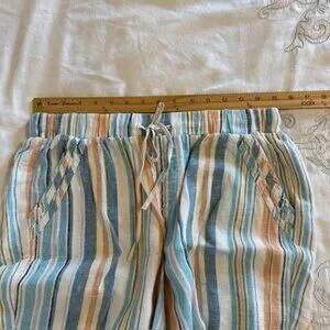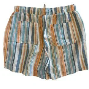 Briggs Women's Linen Blend Pull-On Shorts with Pockets Size Medium Blue Stripe.