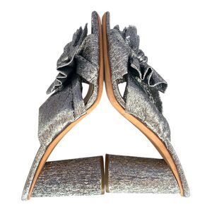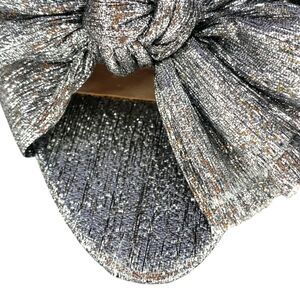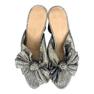 Loeffler Randall Silver Metallic Penny Knotted Pleated Bow Heels Mules Sandals