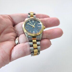 Classic watch / business casual / watch with blue face / two-tone metallic
