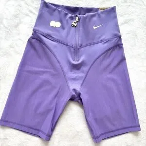 NIKE X Naomi Osaka Tight Fit Front Zipper Purple Mesh Biker Shorts--XS