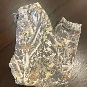 Comfortable pants with a gray camouflage design. Ideal for everyday wear.