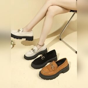 Women's Brown Chunky Platform Loafers with Chain Detail