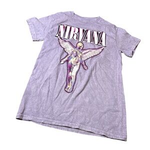 Nirvana washed dye Acid Wash Band Tee small Purple