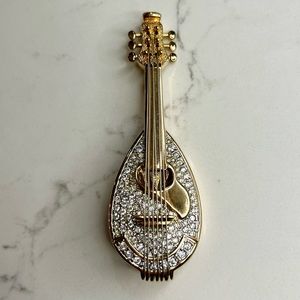 Vintage exclusive rare mandolin music relic guitar crystal pin brooch gold instrument niche classicore sparkle shine