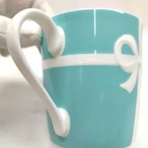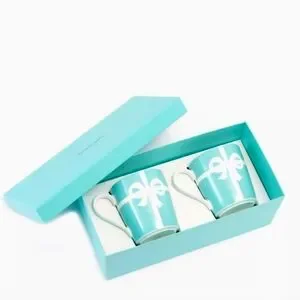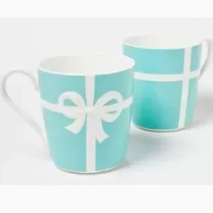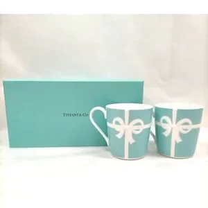 TIFFANY & CO. Bow Ribbon Bone China Blue Mug Cup 2pcs Set in Gift Box from Japan