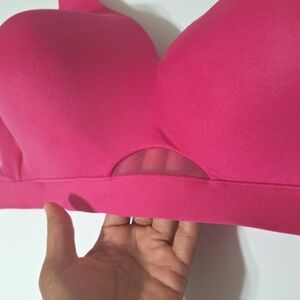 *This Lane Bryant "Comfort Bliss" bra by Cacique is so pretty! It is hot pink, with a see thru middle panel. It has no wire, but a comfortable elastic band. It has wide, cushioned adjustable straps. It is lightly lined. There is a 4 hook closure in the back, with adjustable settings. It is in excellent, like new condition. This is the perfect, everyday comfort bra!*