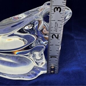 Stunning large Baccarat crystal frog. This gorgeous vintage Baccarat frog is in excellent condition with no chips or cracks. It is clear and heavy crystal. The photos do not do justice to this handsome princely French frog. He was one of the many beautiful pieces in my mother’s frog collection. I no longer have the box but will pack him exceptionally well in layers of velvet and tissue paper to prepare him for his luxurious journey to your home. He is around 4.75 in length. Please see measurements in photos