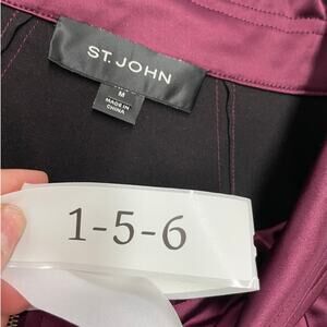 St. John Jacket Womens Medium Purple Rain Zip Cowl Neck Drawstring Satiny Snap