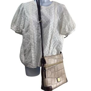Dooney & Bourke Denison Croco Crossbody Bag Cream Tan Brown Style #: DQ3264