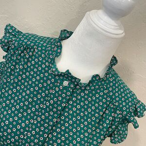 Loft size women's medium / M / med sleeveless blouse, in a beautiful green mini-floral pattern. Flutter style sleeveless arm opening. Button-up style at neck. Pleated back yolk. Can be worn buttoned or unbuttoned. Flowy, lightweight, breezy, comfortable! Great for work, office, professional, casual, dressy, church, modest, classic, timeless, classy, jade, kelly,