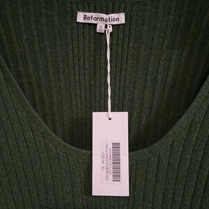 NWT Reformation Farfalle Cashmere Sweater Mini Dress in Cedar. This is a fine-gauge recycled cashmere blend sweater knit - 90% Recycled Cashmere, 10% Cashmere.