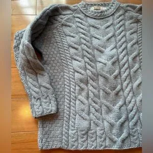 Aran Sweater Market 100% Merino Wool Sweater Women’s Size XXL Gray Hand Knit