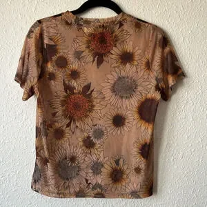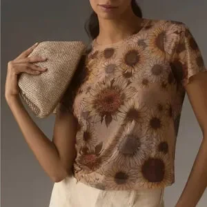 Anthropologie Porridge Short-Sleeve Mesh Tee Sunflower Print Size XS