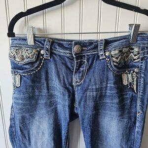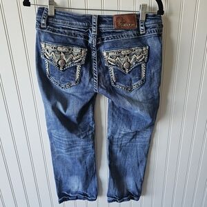 Grace in LA Blue Capri Jeans with Decorative Stitching Womens 27